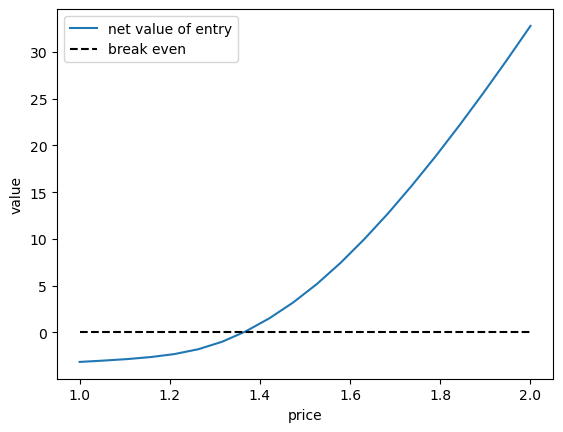 entry_val, v_bar = compute_net_entry_value(p, v_bar, parameters, grids)