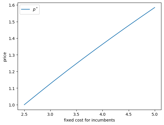 As an exercise, let’s look at the fixed cost paid by incumbents each period and how it relates to the equilibrium price.