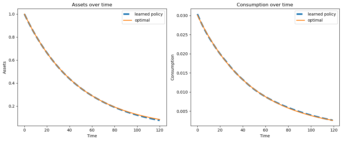 Below, in each optimal savings application, we will specify the loss function as \(-\hat M\), where \(\hat M\) is the approximation to lifetime value defined above.