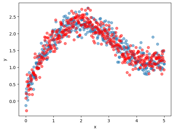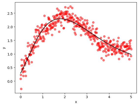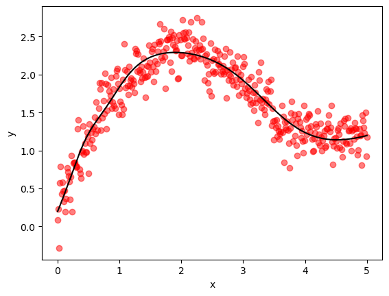 y = x**0.5 + jnp.sin(x) + ϵ