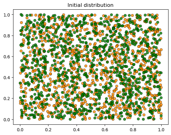 plot_distribution(locations, types, 'Initial distribution')